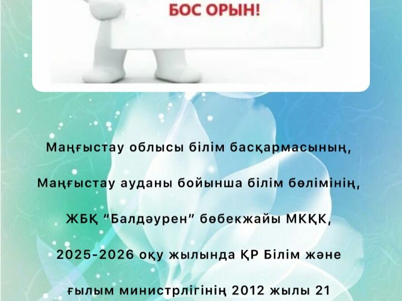Маңғыстау ауданы бойынша білім бөлімінің «Балдәурен» бөбекжайы» жедел басқару құқығындағы МКҚК ЖаңалықтарыҚараша 19, 2025